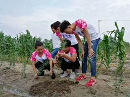 在陈社长的带领下,实践团师生来到苦参、苍术、白鲜皮、黄精等药材的种植基地,陈社长介绍了这些中草药的生长习性、药用价值、亩产量、种植的合作化情况以及销售情况。同学们认真听,用心记,还不时结合自己所学的药学知识向陈社长提问,并与他进行亲切交流和热烈互动。在种植基地现场,陈社长还让同学们实地挖出一颗白鲜皮药材,讲解这种药材的种植生长情况。同学们感到理实结合,受益匪浅。